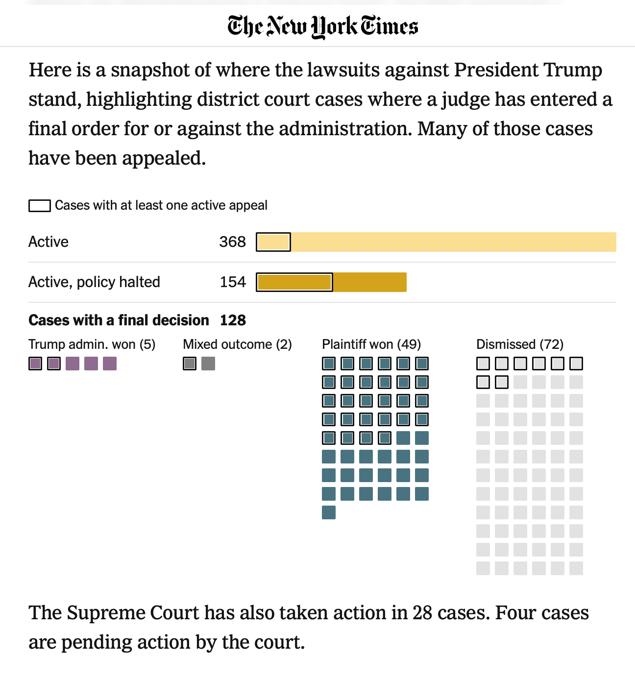 The most essential thing about the Trump Administration right now is that it is weak, chaotic, and wildly unpopular and doing everything it can to make itself more so. Unfortunately it's taking the nation and to some extent the world with it, but if you want to see the administration as the drunk driver, more and more people are getting out of the car, or trying to turn it around (and take the keys away). Congress could do it, but Mike Johnson and John Thune won't let that happen (while everyone is focused on Trump, the fact that Congress has immense powers that have been sabotaged or surrendered could use a lot more attention and maybe a campaign to shame the party in charge).
