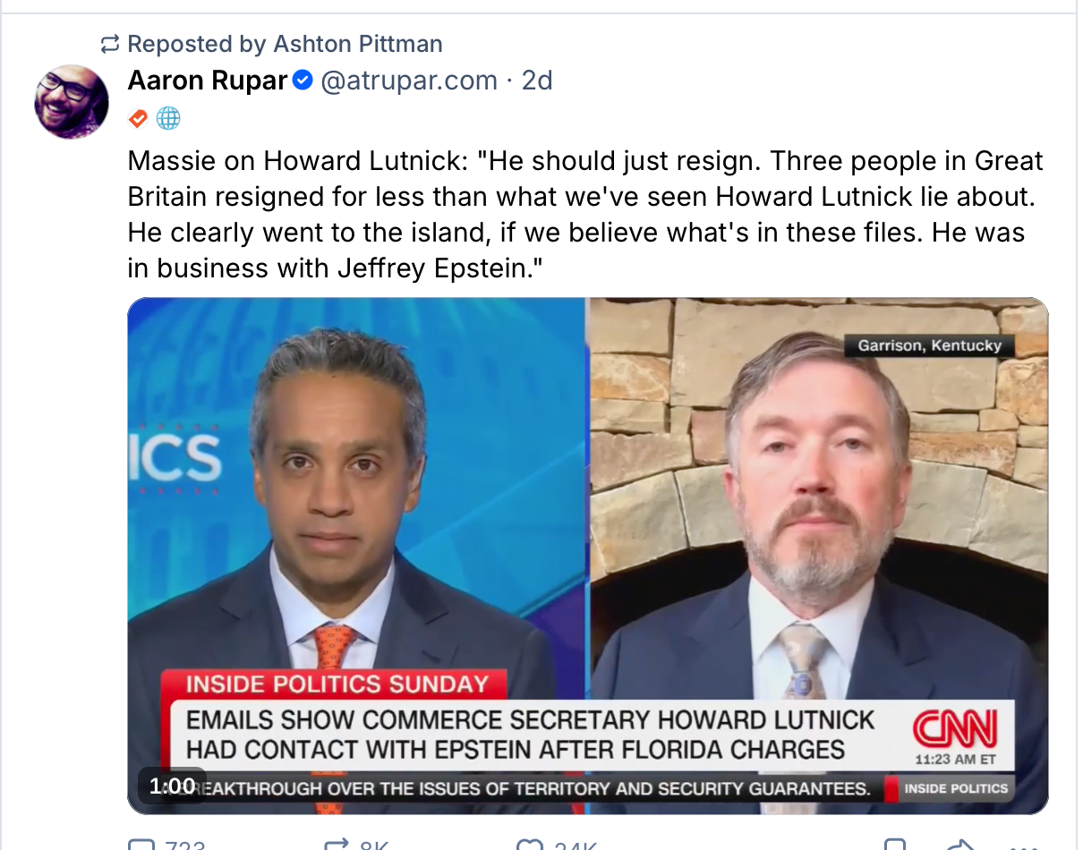 The hideous crimes of Trump's ICE in the present and the revelations about the hideous crimes of the past that implicate so many rich and powerful white men, including Trump and his commerce secretary, Howard Lutnick, are together a sort of pincers move. They corral the administration from two angles, clarifying its utter disregard for the human rights of, well, everyone but powerful white men.