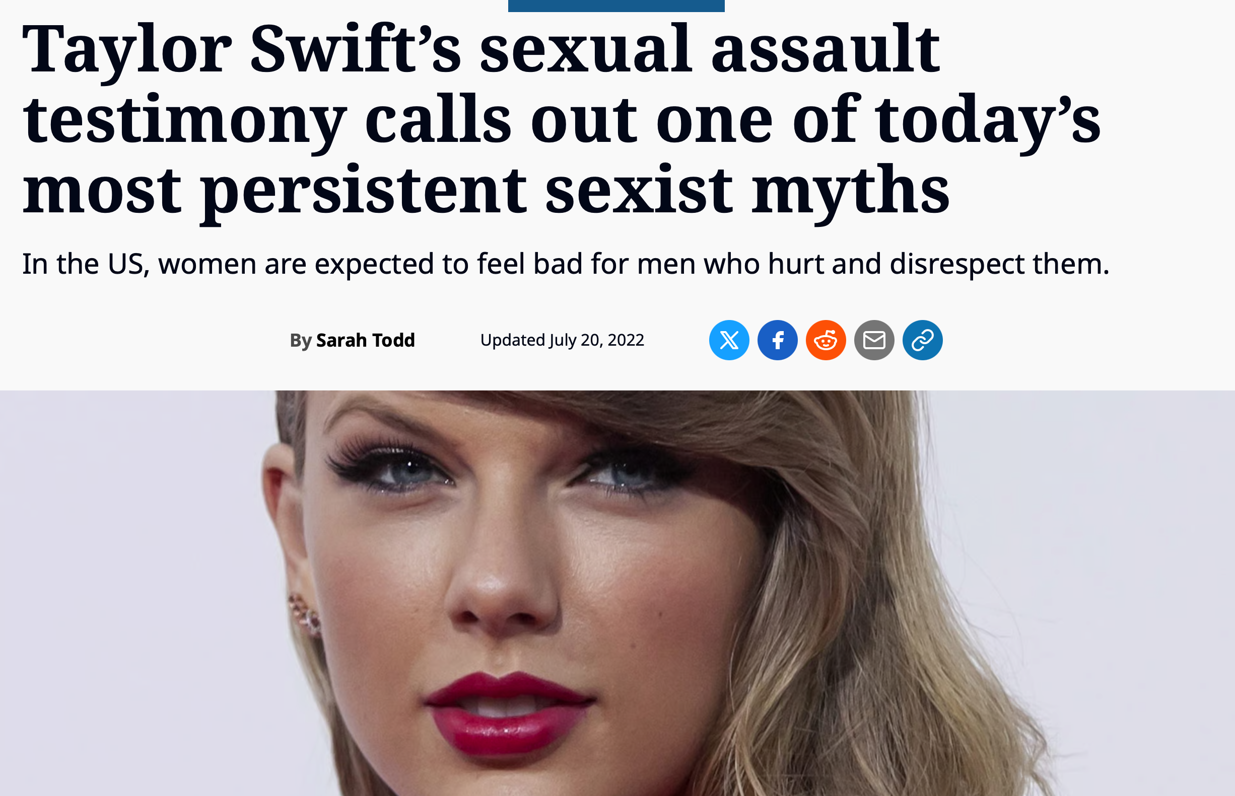 That will almost certainly be my all-time favorite performance of hers, and it was a significant event during that glorious feminist insurrection that began around 2013, reached a crescendo in 2017 with #metoo, and has ongoing positive consequences (just reading the piece in the screenshot below is a reminder how normal it was a dozen years ago to make public noises about how sad it was that some rapist's "bright future" was being wrecked just because he brutally assaulted someone with ruthless disregard for her humanity and right to self-determination).