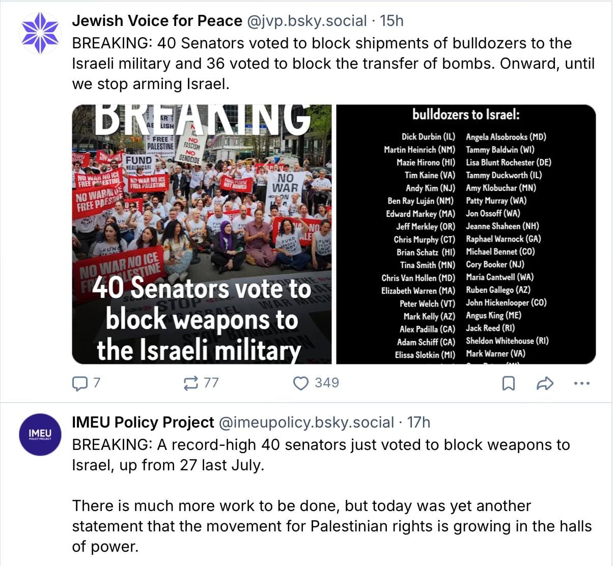 Another notable trend over the past couple of years is the decline in support for the Israeli government and military. Like opposing the NRA, opposing the Israeli government used to be something politicians were scared to do. The big shift in public opinion on the subject led the way (which is another reason why I hesitate to call politicians leaders; they are often followers of public opinion which is, at best, doing their job of representing us and at their worst following the money).