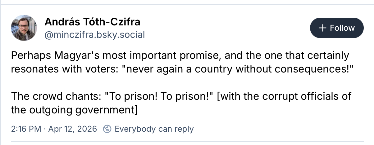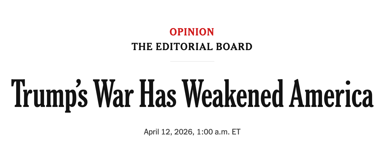 Last week Vance went to Hungary to try to stump for Viktor Orban, the authoritarian president there who as I write, has just lost the election after sixteen years as prime minister, during which he worked hard to spread authoritarianism around the world, including in the USA. The vice president's efforts were said to have been the opposite of helpful. Only yesterday, the inexperienced Vance failed to gain anything in his negotiations with a far more skilled Iranian negotiating team. The Trump Administration appears to have lost this war – had it won, it would be dictating terms, rather than unsuccessfully negotiating to return to the status quo of an open Strait of Hormuz. And of course the main justification after the fact for the war is Iran's alleged pursuit of nuclear arms, but speaking of soft power and the power of cooperation, Trump sabotaged the deal the Obama Administration struck with Iran. Soft power trumps the power of violence, over and over.