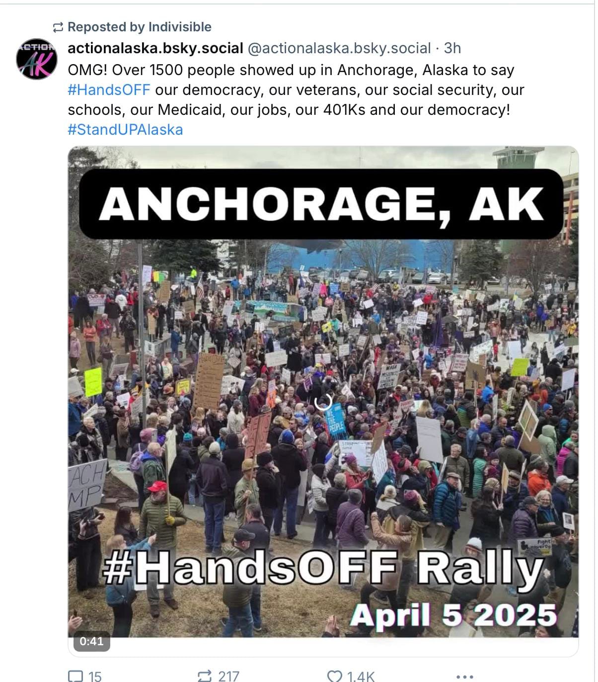I have news for you. We can do this. We can meet this moment. We are doing it today, and today is a great day, a historic day, a day when global civil society says hands off to would-be dictators and destroyers, hands off our social security, our national parks, our heath and human services, our elders, our children, our immigrants, our trans friends, our people with disabilities and our people with dissenting opinions. We can do this, not with one day of protest but with organizing and showing up and donating and supporting and speaking up for however long it takes.