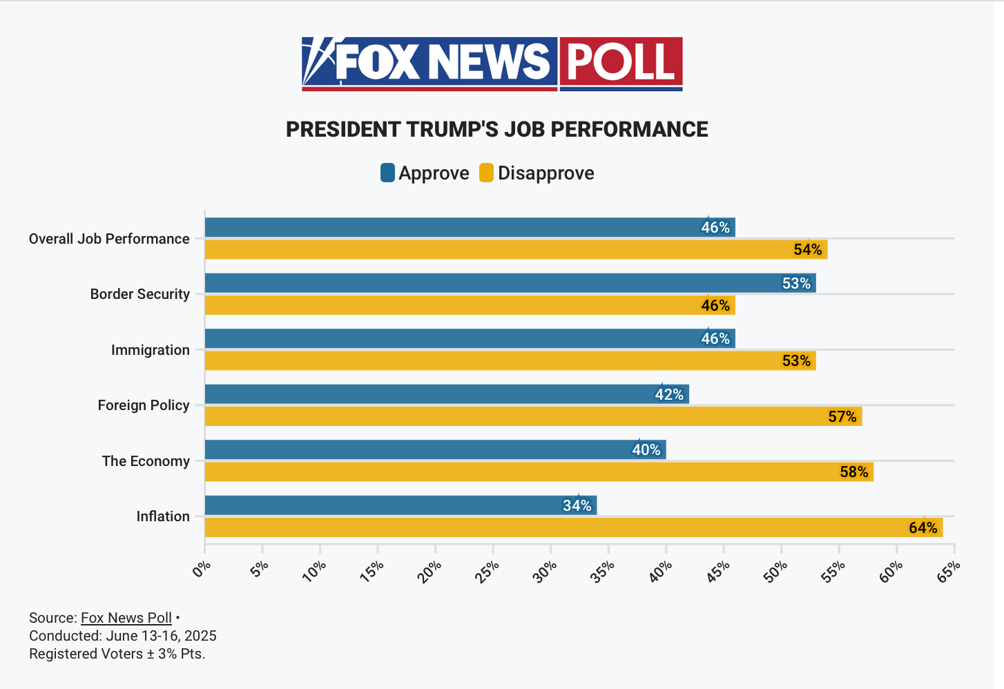 Among the possible reasons why Trump decided to get in on Netanyahu's war of aggression (aside from the fact that he's an easily manipulated sucker) is the fact that his polling numbers are tanking. On Truth Social, he whined about the Fox News poll posted below: "The Crooked FoxNews Polls got the Election WRONG, I won by much more than they said I would, and have been biased against me for years. They are always wrong and negative. It’s why MAGA HATES FoxNews, even though their anchors are GREAT." Another explanation came in an email a friend sent me tonight, "And because no one came to his birthday party, one week later we’re in a war."